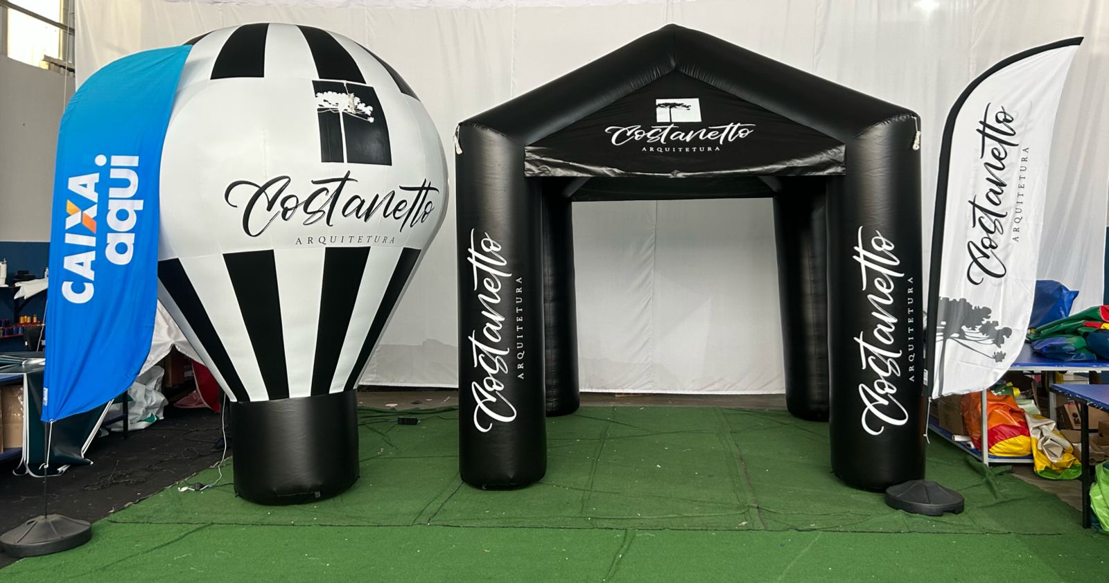 O combo dos produtos go!midias oferece uma maneira inovadora de divulgação e propaganda para sua empresa ou evento. É composto por 4 windbanners + 1 Roof top 3 m + 1 Tenda 3x3. Inove utilizando mídias não tradicionais!