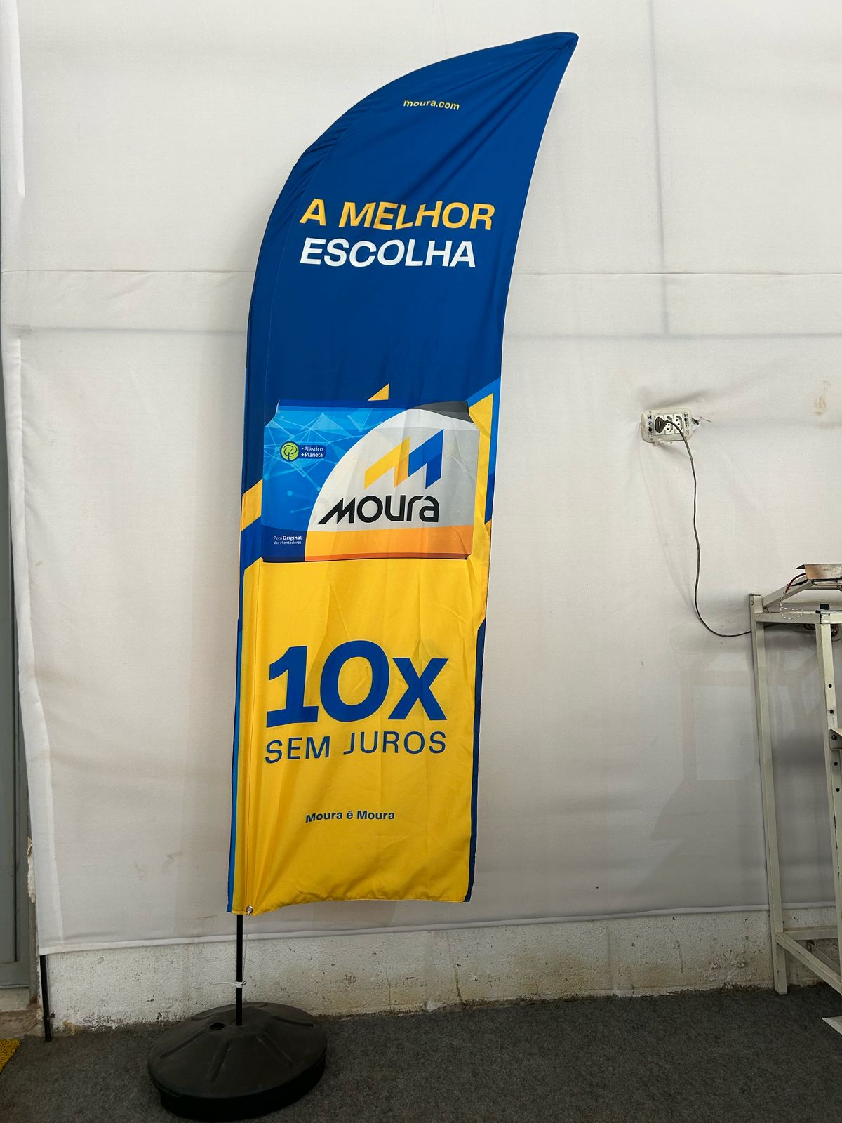 O Wind Banner 3D permite que você extrapole os limites do tecido e chame atenção do seu público de uma forma impactante e moderna. Utilizamos a imagem do seu produto ou serviço para impressão do tecido.